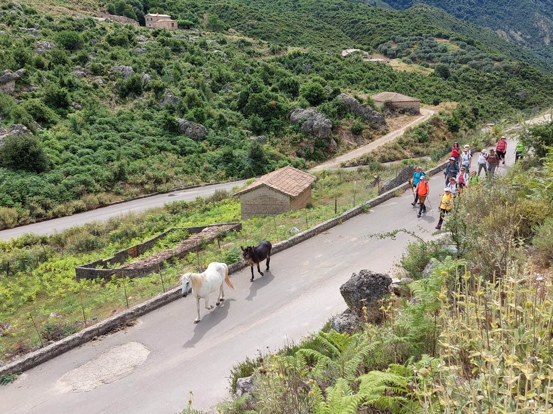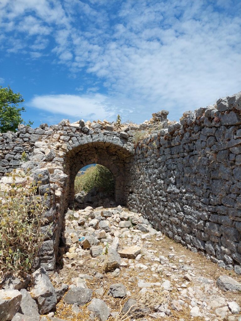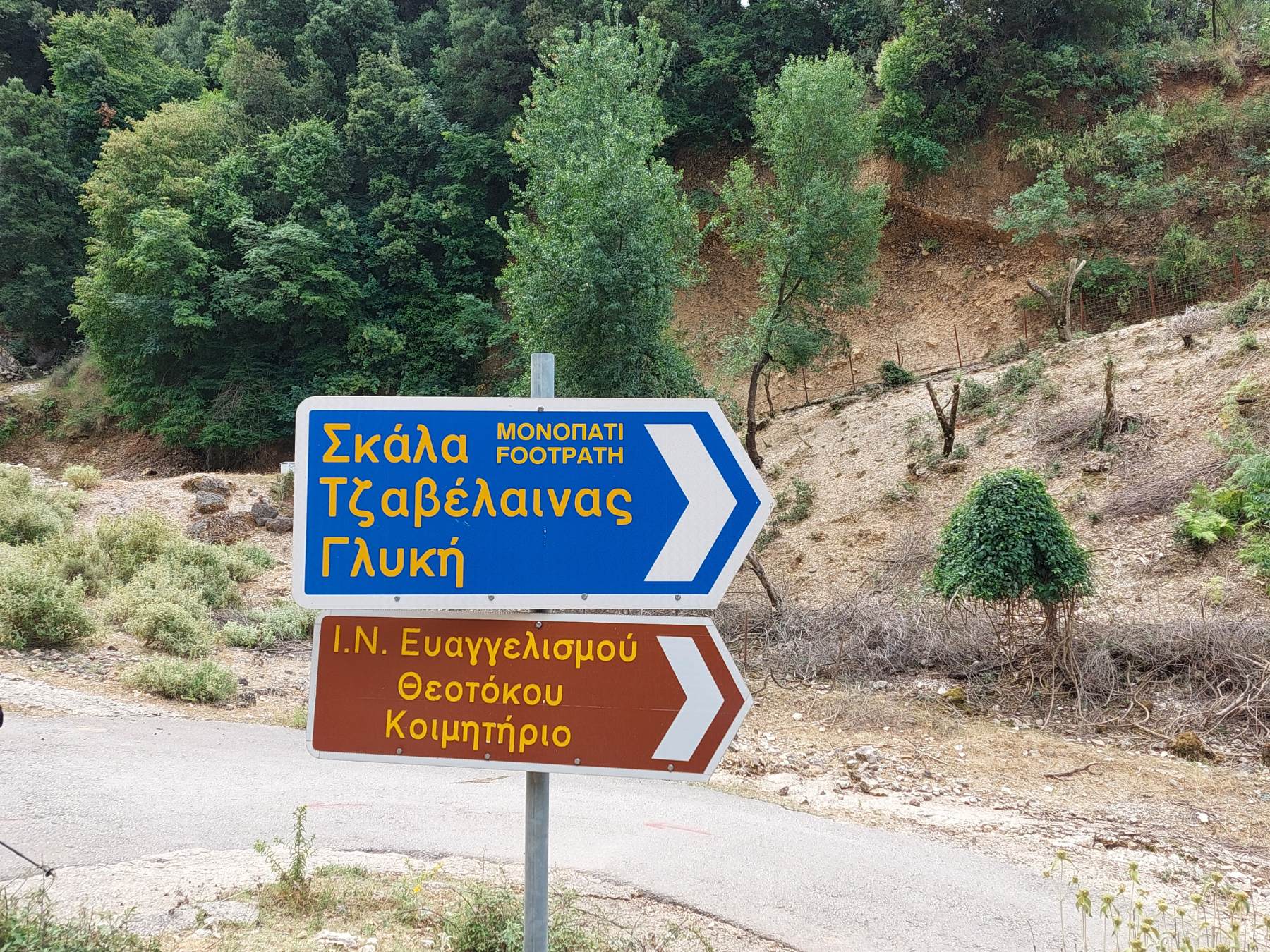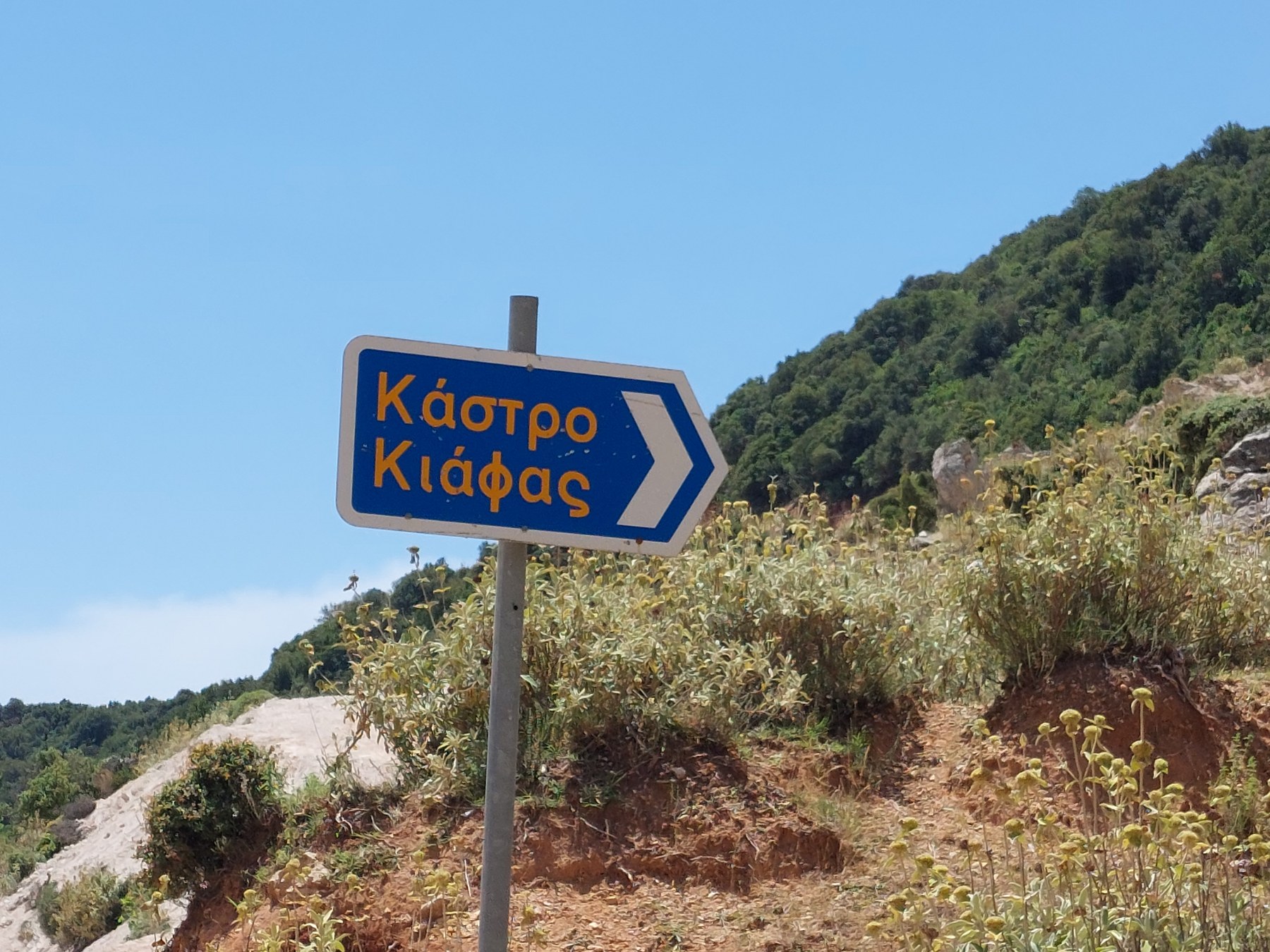 Κατεβαίνοντας μπήκαμε σε μονοπάτι, πετρώδες, με κάποια σκαλιά να σώζονται ακόμη, η βλάστηση χαμηλή και δενδρώδης από βελανιδιές και πολλά αρωματικά βότανα.