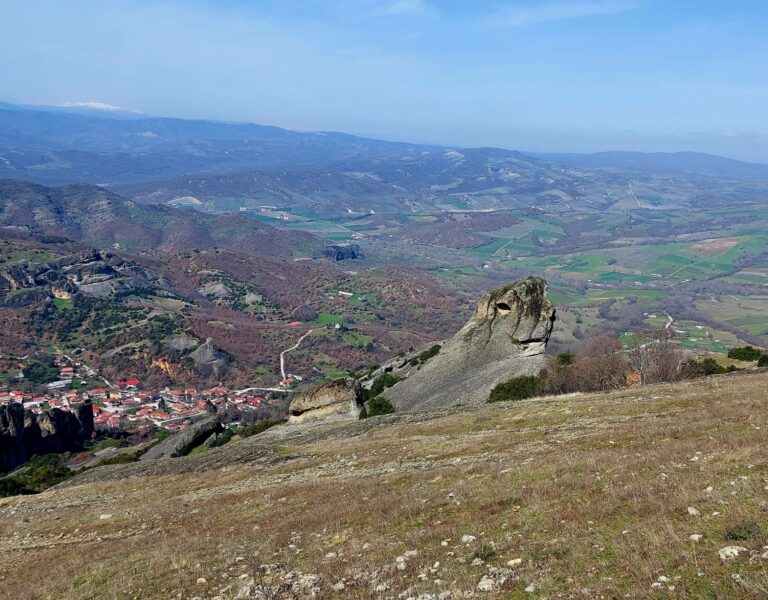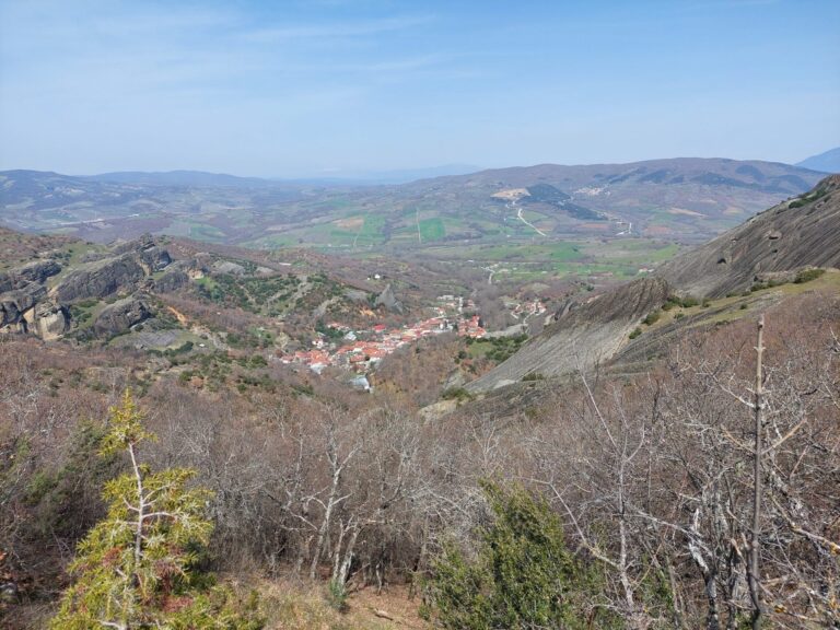 Πήραμε το δρόμο για το χωριό από τη δυτική πλευρά, αυτή τη φορά κατηφορίζοντας λίγο απότομα σε άδενδρη περιοχή και πάνω από ένα κομμάτι βράχου που είχε λίγη ολισθηρότητα. Το χωριό κάτω έδειχνε πανέμορφο, πλαισιωμένο από τους γκρίζους βράχους να το αγκαλιάζουν και να το προστατεύουν!