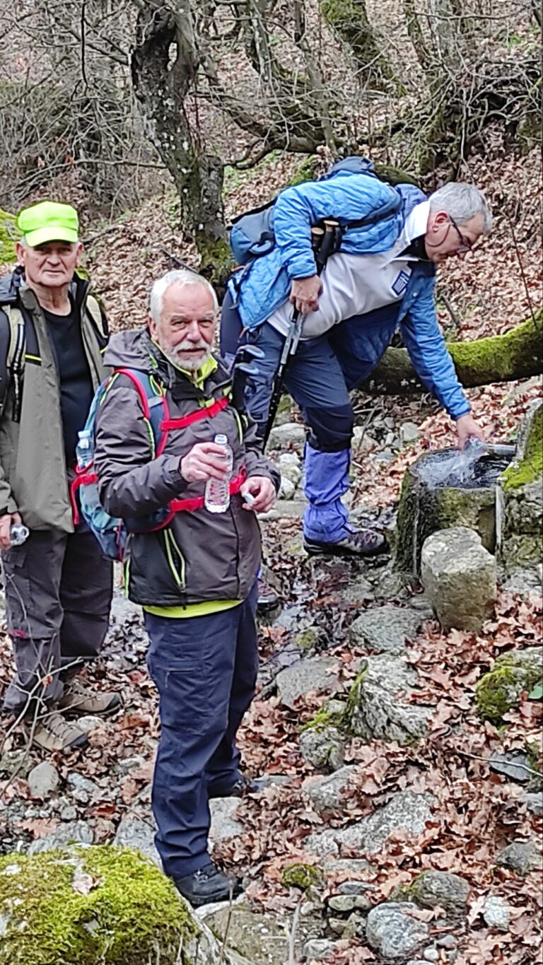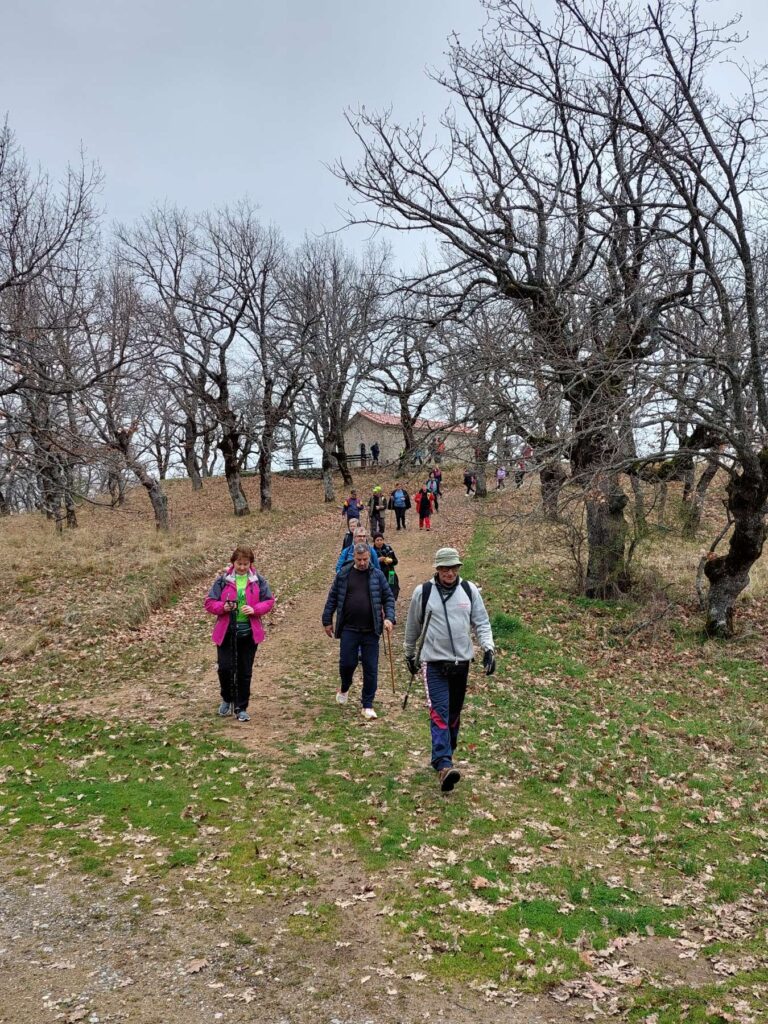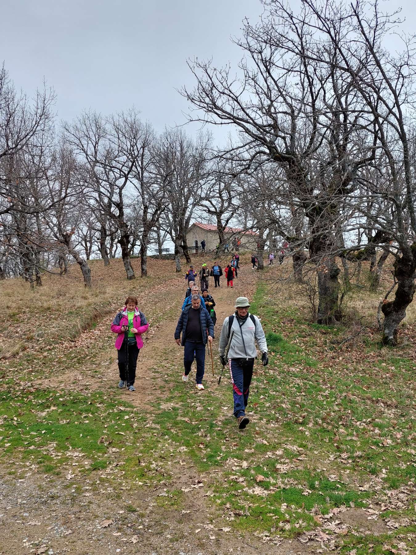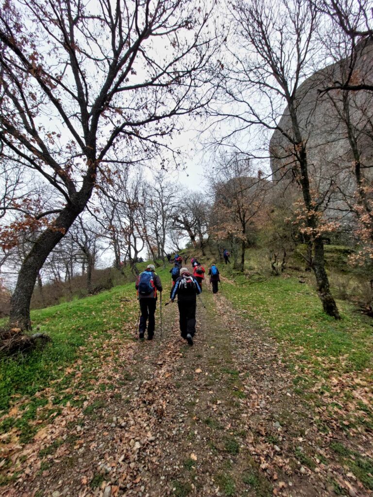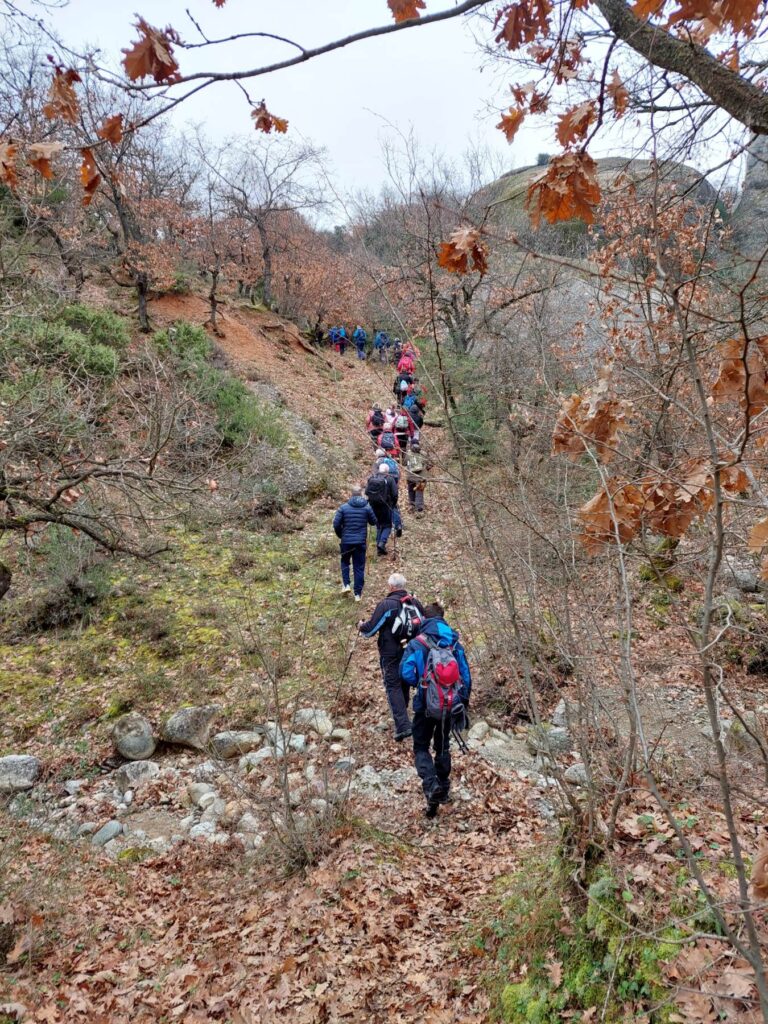 Η ομάδα μας των 35 ατόμων (μαζί μας και ο συμπαθής τετράποδος Άρης) πήρε το ανηφορικό μονοπάτι στην ανατολική πλευρά που οδηγεί στο μονυδριο του Αγίου Νικολάου.