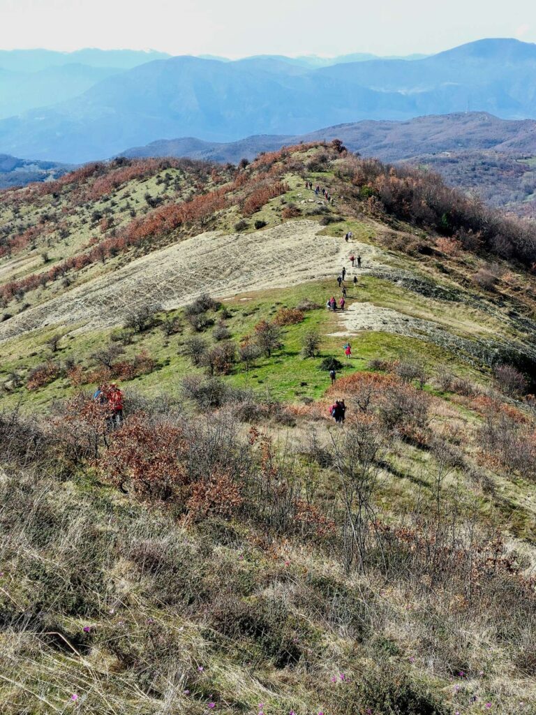 Η απότομη ανάβαση συνεχίστηκε έως ότου φθάσαμε στην κορυφογραμμή της αρκούδας που οδηγεί στον ομώνυμο βράχο. Η άνοιξη έχει έρθει και οι υπέροχες ανεμώνες μας καλωσόρισαν με τα όμορφα χρώματά τους στολίζοντας το χορτάρι που δειλά δειλά ξεπροβάλλει δίνοντας έμφαση στο τοπίο!
