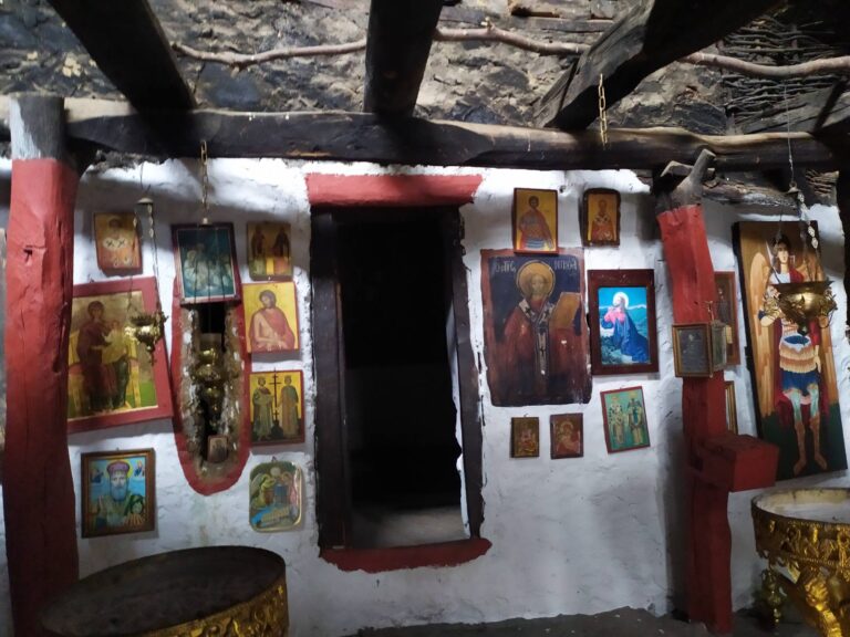 Συνέχισε σε δασικό δρόμο προς το εξωκλήσι της Κοιμήσεως της Θεοτόκου και μετά από μια σύντομη στάση ανηφορίσαμε μέσα σε δάσος από βελανιδιές με εμφανή τα ίχνη των αγριογούρουνων από το χαρακτηριστικό σκάψιμο .