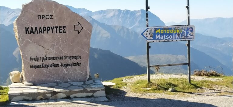 Αφήσαμε τα αυτοκίνητα ακριβώς στον αυχένα που υπάρχουν οι πινακίδες που κατευθύνουν στους Καλαρρύτες δεξιά και στο Ματσούκι αριστερά.